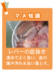 レバーは水にさらして血抜きをし、食べやすい大きさに切る。