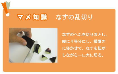 - 土生姜はみじん切り、ピーマンは種を取り除いて線切り、なすはへたを切り落として乱切りにする。
